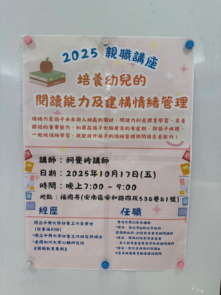 相簿名稱: 114.10.17 親職講座~~培養幼兒的閱讀能力及建構情緒管理